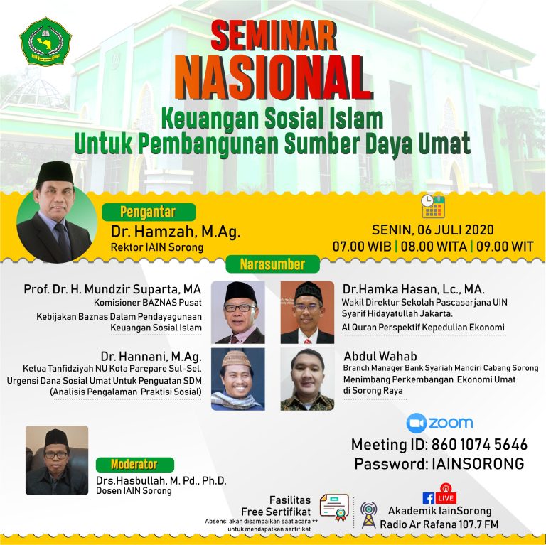 Adakan Webinar tentang Keuangan Sosial, IAIN Sorong Menghadirkan Komisioner Baznas Pusat