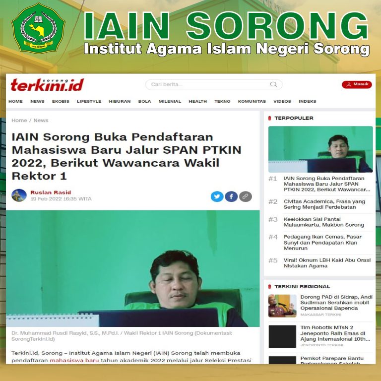 Jum’at, 18 Februari 2022 bertempat di Rektorat, Tim Kehumasan IAIN Sorong berhasil merangkum hasil wawancara bersama Dr. Muhammad Rusdi Rasyid, S.S., M.Pd.I. (Wakil Rektor…