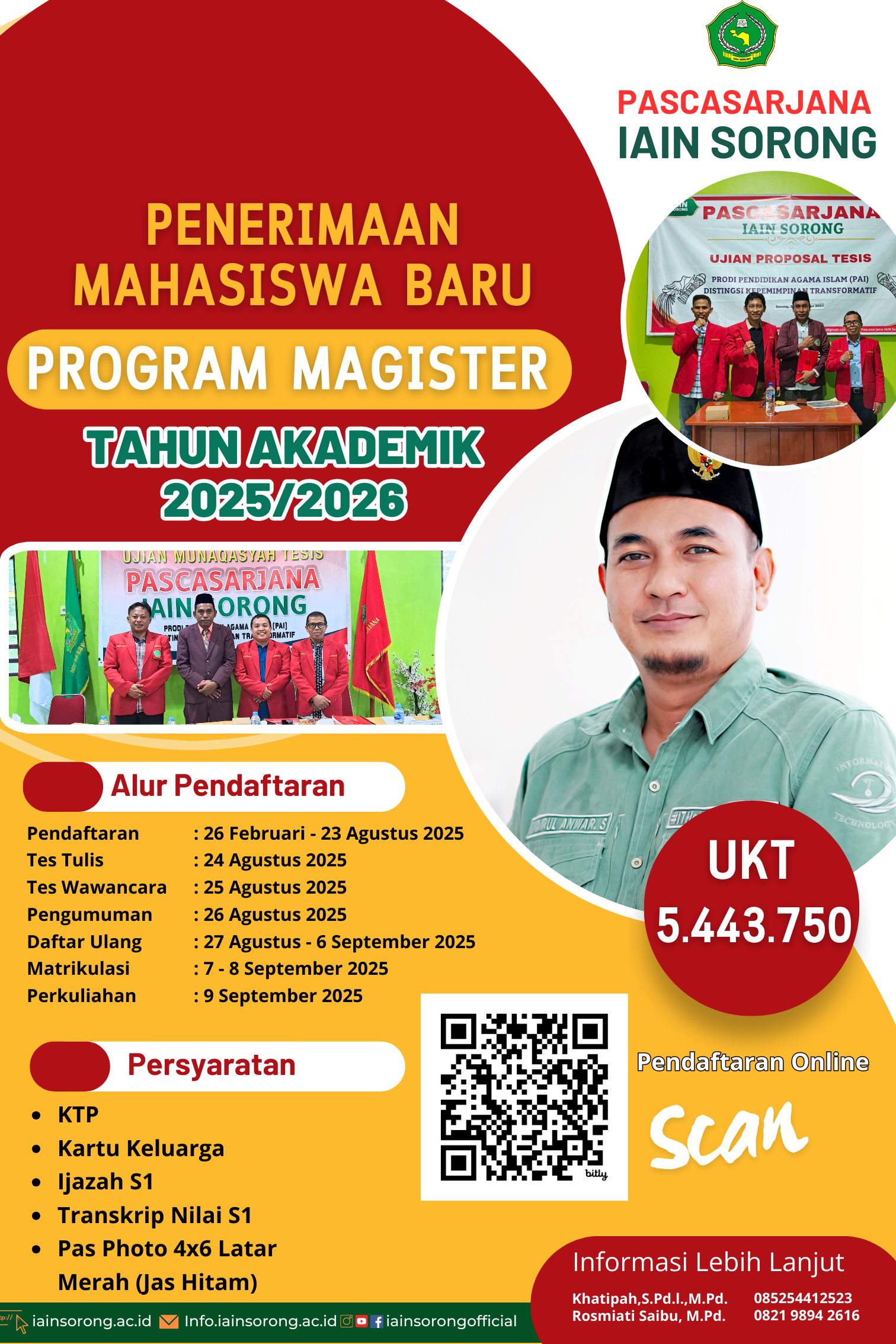 Pesatnya perkembangan ilmu pengetahuan dah teknologi, meningkatnya expektasi masyarakat untuk mendapatkan layanan pendidikan bermutu, dan banyaknya kritik terhadap pembelajaran PAI, serta keberadaan lembaga-lembaga pendidikan islam yang mayoritas berkualitas rendah, menuntut tersedianya tenaga pendidik PAI dan penyelenggara pengelolah lembaga pendidikan islam yang profesional, kompetitif dan inovatif. Untuk merespon tantangan tersebut, Pascasarjana STAIN Sorong sejak tahun 2015 membuka Program Magister (S2) Pendidikan Agama Islam (PAI).