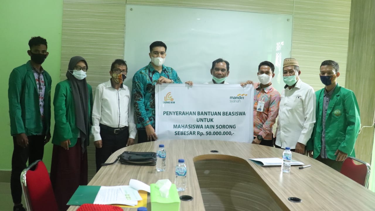 Mengawali Bulan Februari 2021 di masa pandemik corona 19, Bank Syariah Mandiri (BSM) yang Baru Beralih Bentuk menjadi Bank Syariah Indonesia (BSI) kembali memberi bantuan Beasiswa Bagi Mahasiswa Institute Agama Islam Negeri (IAIN) Sorong.