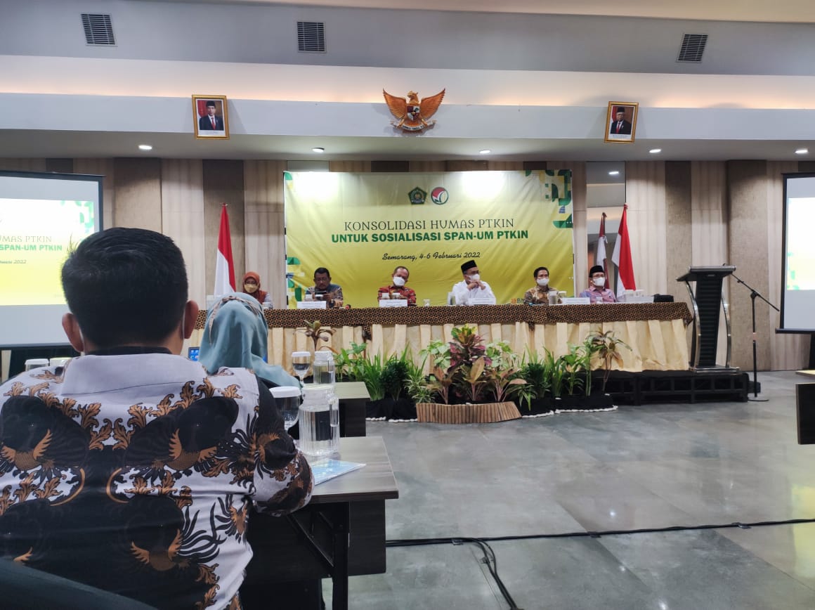 Semarang, 04 Februari 2022 – Humas Perguruan Tinggi Keagamaan Islam Negeri (PTKIN) seluruh Indonesia melakukan konsolidasi terkait pelaksanaan penerimaan mahasiswa baru melalui jalur Seleksi Prestasi Akademik Nasional – Ujian Masuk Perguruan Tinggi Keagamaan Islam Negeri (SPAN-UM PTKIN) yang berlangsung di salah satu hotel Semarang, Jum’at (4/2/2022).