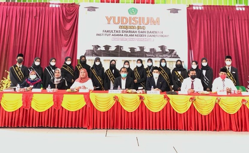 Sorong, — Fakultas Syariah dan Dakwahv Institut Agama Islam Negeri Sorong menyelenggarakan yudisium sarjana kepada 45 orang mahasiswa yang bertempat di gedung Aula IAIN Sorong (20/9/21).