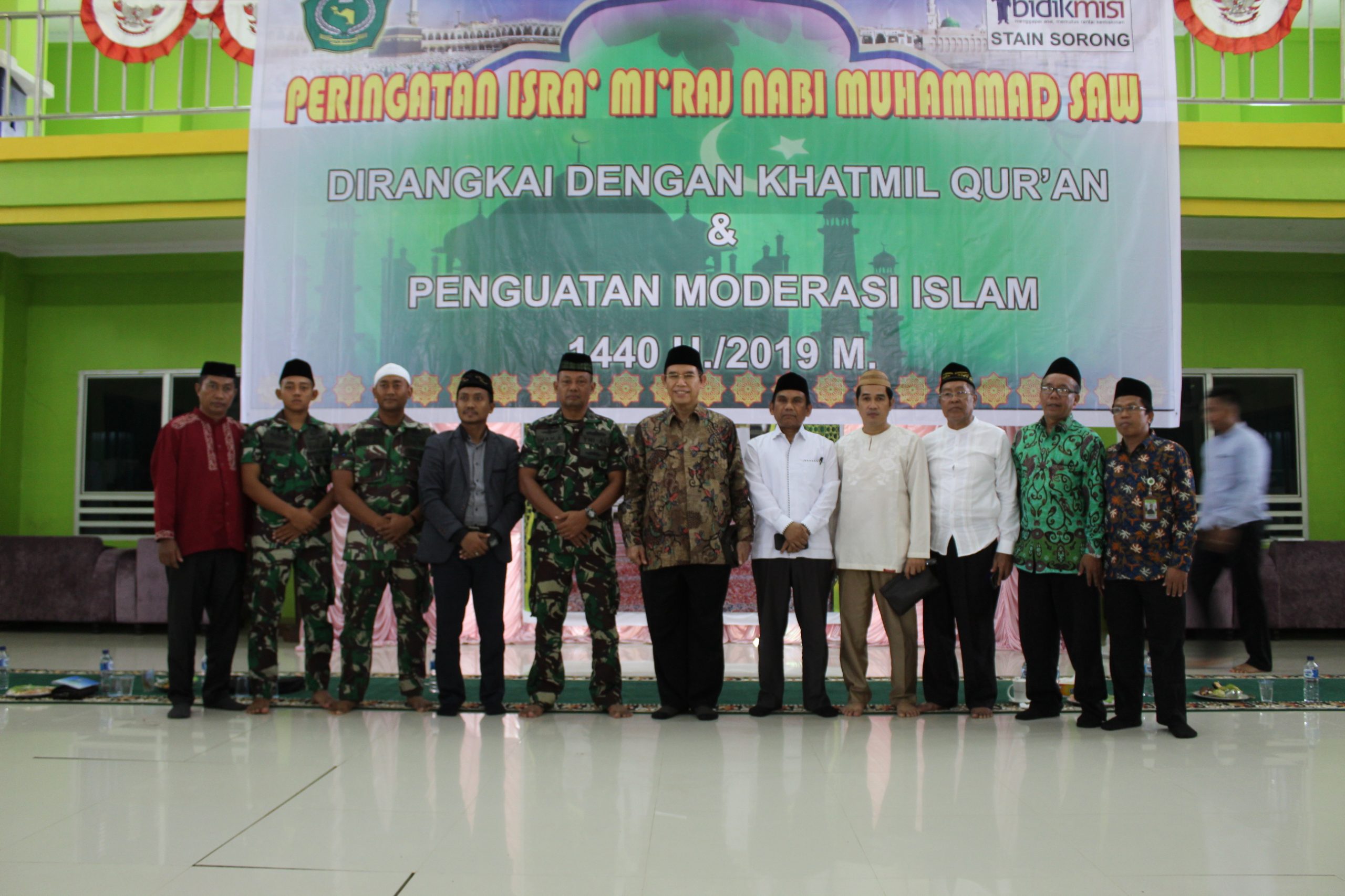 Seperti yang disampaikan oleh ketua STAIN Sorong Dr. Hamzah M.Ag. dalam sambutannya, “acara isra mikraj kali ini tidak dilaksanakan di bulan Rajab, melainkan di bulan Sya’ban, dan dihadiri pula oleh tamu kehormatan kita yakni guru besar UIN Syarif Hidayatullah Jakarta, prof. Dr. Ahmad Thib Raya, M.A.”. Beliau menambahkan, acara ini merupakan kegiatan yang menggunakan pendekatan spiritual, yakni khotmil quran dan penguatan moderasi islam. Ini sekaligus sebagai tema pada acara isra kali ini. Menurut panitia, peserta atau jamaah yang hadir pada acara ini sebanyak 507 orang jamaah dan telah melakukan khotmil quran selama kurang lebih 3 jam, sejak pukul 08.00-11.00”.