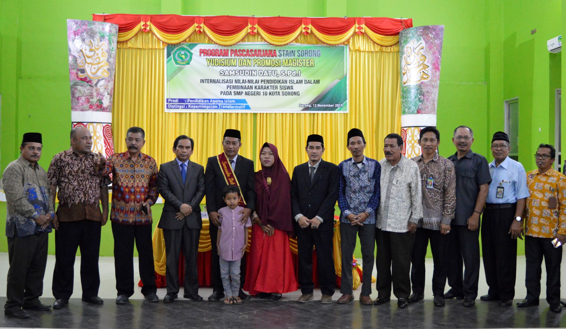 Acara Yudisium dan Promosi Magister yang berlangsung kemarin terlaksana dengan lancar dan khidmat. Promovendus atas nama Samsudin Datu diberikan kesempatan untuk mempresentasikan secara singkat tesisnya yang judul “Internalisasi Nilai-Nilai Pendidikan Islam dalam Pembinaan Karakter Siswa pada SMP Negeri 10 Kota Sorong”, dengan IPK 3.73 (amat memuaskan). Terlihat Samsudin Datu begitu menikmati poin demi poin presentasi yang ia sampaikan. Berikutnya, acara ini sebagai bentuk syiar STAIN Sorong dan bukan semata-mata sebagai ajang memperlihatkan gaya-gayaan.