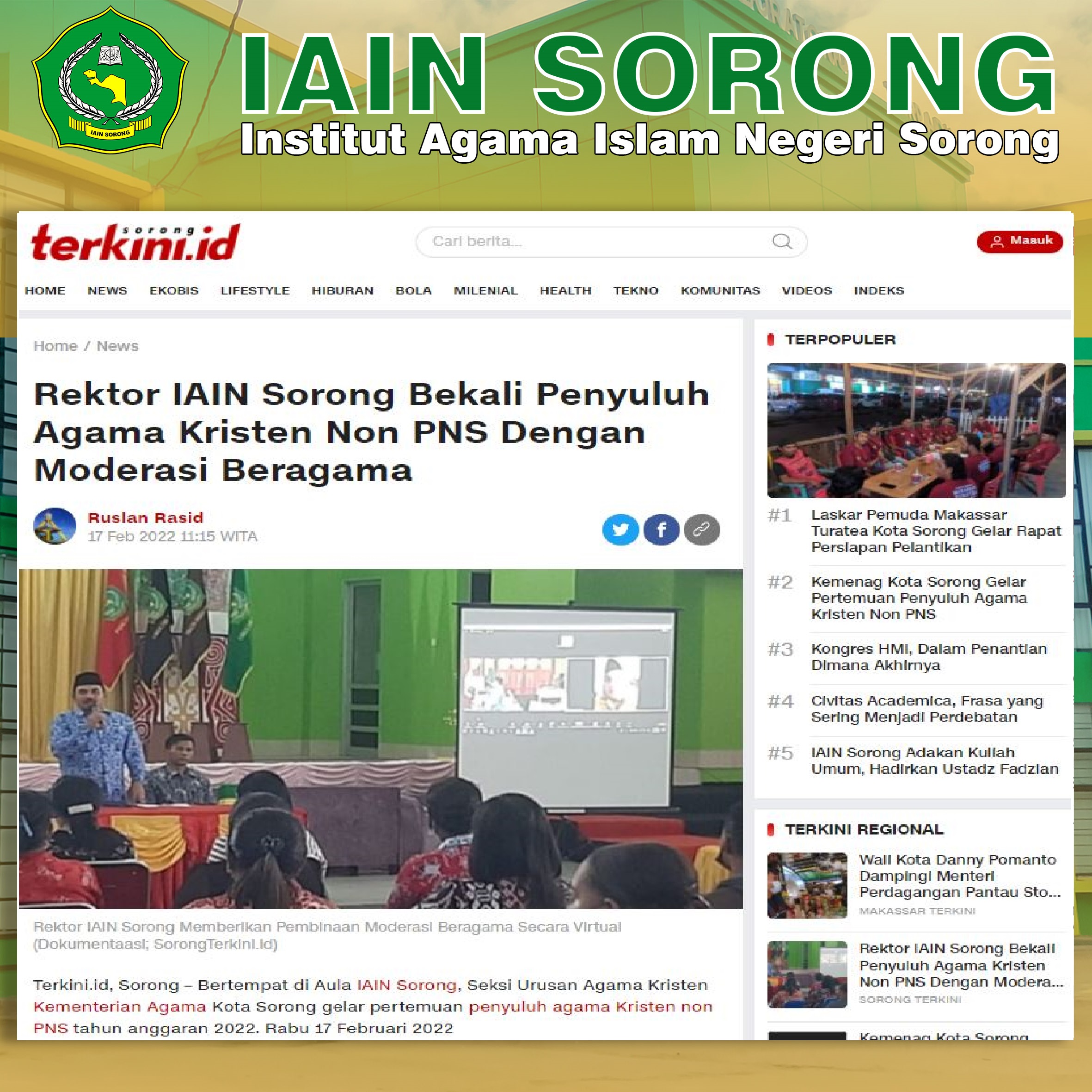 Terkini.id, Sorong – Bertempat di Aula IAIN Sorong, Seksi Urusan Agama Kristen Kementerian Agama Kota Sorong gelar pertemuan penyuluh agama Kristen non PNS tahun anggaran 2022. Rabu 17 Februari 2022 selengkapnya