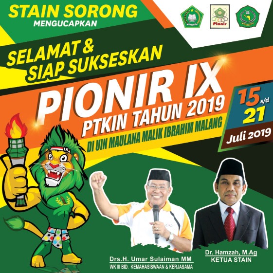 Perhelatan akbar Pekan Olah Raga Seni dan Riset (PIONIR) PTKIN se-Indonesia yang akan digelar di UIN Malik Ibrahim Malang, tanggal 15-21 Juli 2019. Sekolah Tinggi Agama Islam Negeri (STAIN) Sorong, Papua Barat menargetkan poin penuh untuk semua cabang yang dilombakan. Dari 39 cabang yang di lombakan pada PIONIR ke-IX, STAIN Sorong turun pada 16 cabang mata lomba. Para peserta yang akan turun di enam belas cabang tersebut telah melakukan pemusatan latihan 3 bulan sebelum PIONIR diselenggarakan.
