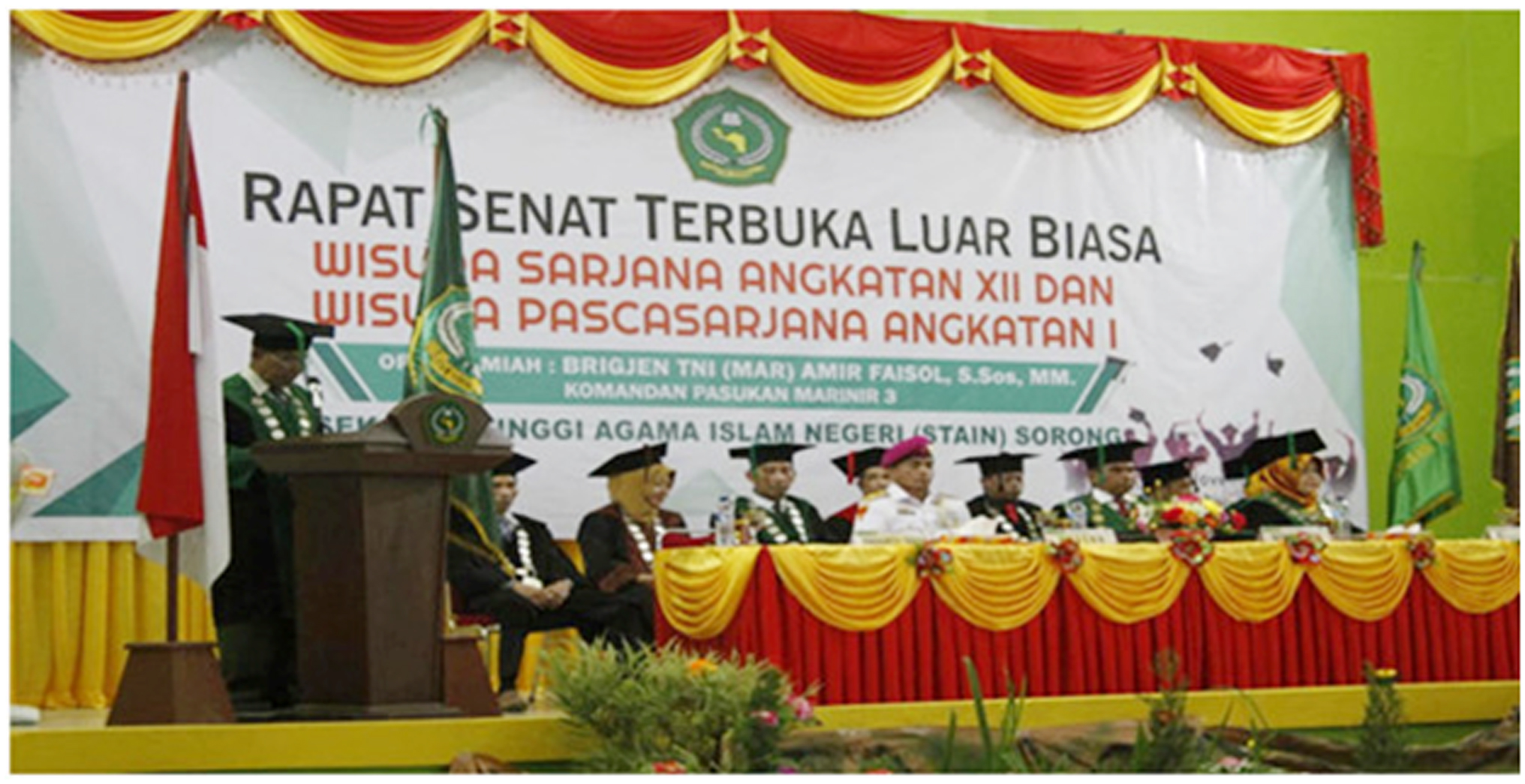 Kamis, 29 November 2018 Ketua STAIN Selaku Ketua Senat Membuka denganResmi Rapat Senat Terbuka Luarbiasa Wisuda Sarjana Strata Satu Angkatan XII dan Pascasarjana Angkatan Pertama di Aula STAIN Sorong, dengan jumlah Wisudawan/I Sarjana Strata Satu 89 Mahasiswa dan Pascasarjana Berjumlah 6 Mahasiswa. Pada Rapat Senat terbuka tersebut dirangkaikan dengan Pengukuhan Wisudawan/I, di mana Mahasiswa yang di wisuda berhak menggunakan tambahan Titel di belakang nama mereka masing- masingsesuai dengan rumpun ilmu pengetahuan yang diperolah.