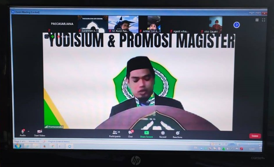 Program Pascasarjana Institut Agama Islam Negeri (PPs IAIN) Sorong menghadirkan dua tokoh penting yakni Ketua Forum Kerukunan Umat Beragama (FKUB) Kabupaten Sorong, K.H. Ahmad Suryatejo S.Pd., dan Rektor Universitas Muhammadiyah Sorong, Dr. Muh.Ali, M.M., dalam acara Yudisium Magister strata II (S.2) Angkatan IV tahun 2020 melalui aplikasi zoom pukul 11.00 WIT, kemarin, Selasa, 16/6/2020